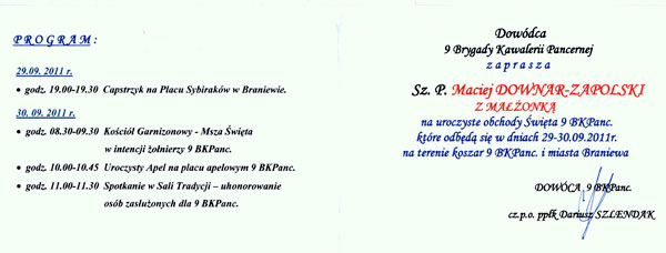 W 17 rocznicę powstania jednostki wojskowej w dniach 29-30 września 2011 roku ułani 9 Brygady Kawalerii Pancernej im. Króla Stefana Batorego obchodzili swoje doroczne święto.