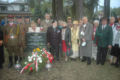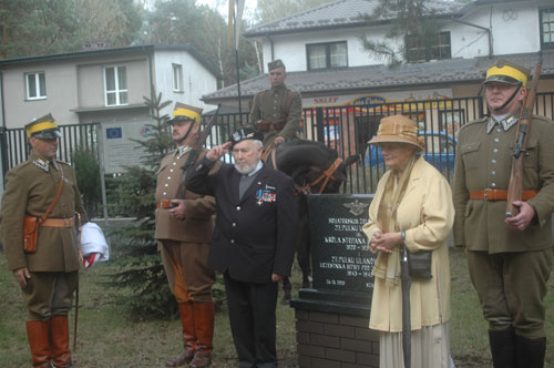 Uczestnicy uroczystości, przy odsłoniętej tablicy, ku czci bohaterskich zółnierzy 27 Pułku Ułanów