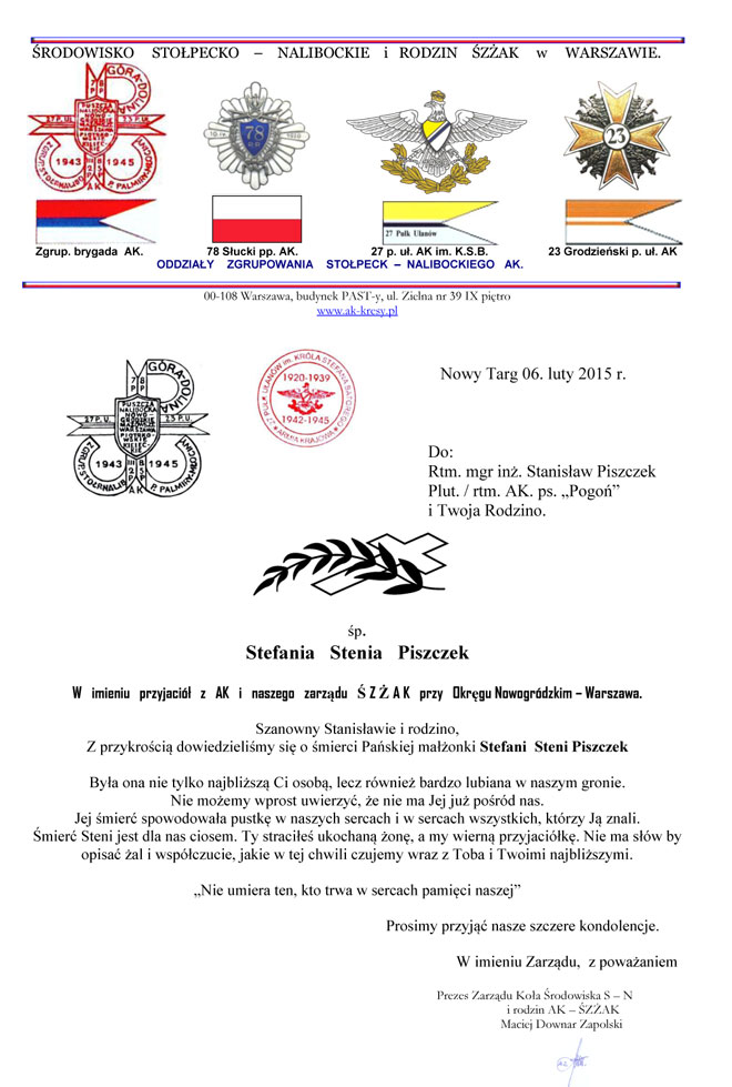 Odeszła Stefania Stenia Piszczek, żona rtm. Stanisława Piszczka