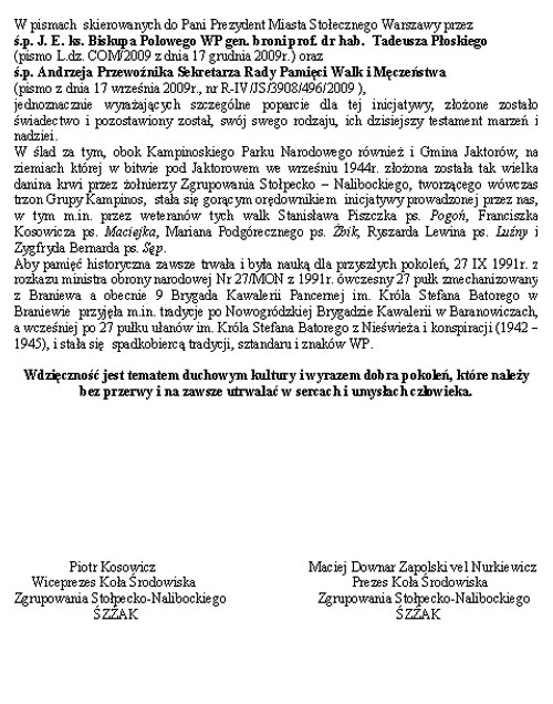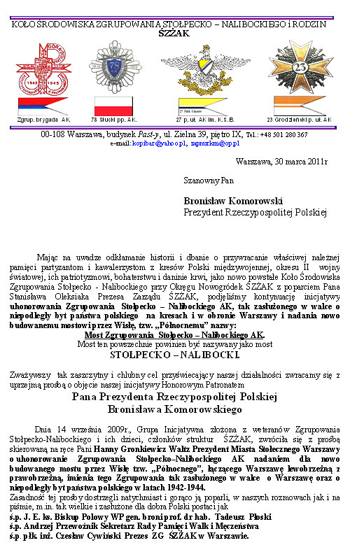 Pismo do Prezydenta RP Pana Bronisława Komorowskiego