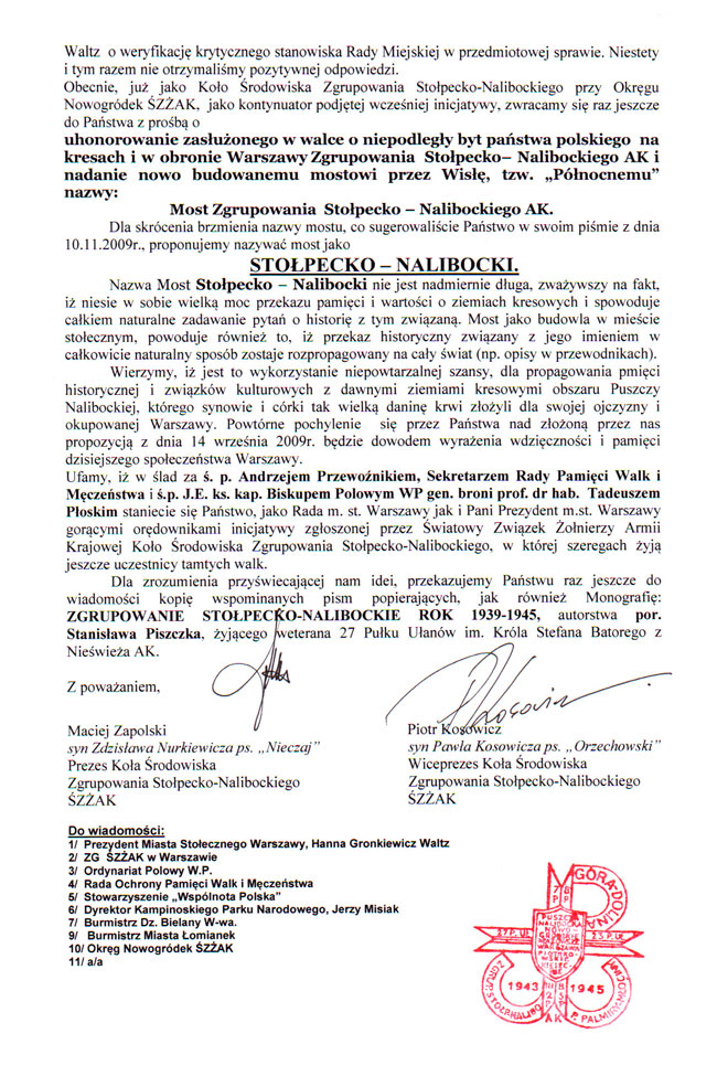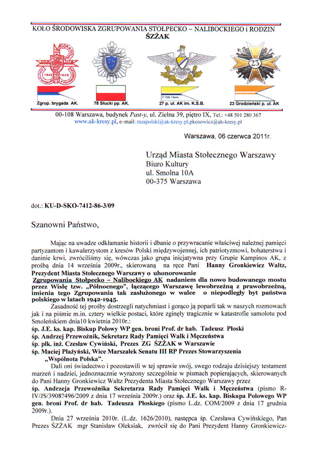 Pismo do Biura Kultury Urzędu Miasta Stołecznego Warszawy