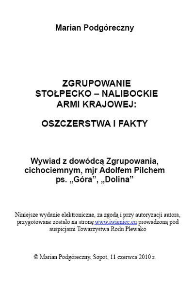 Wywiad z dowódcą zgrupowania cichociemnym mjr. Adolfem Pilchem ps. "Góra", "Dolina" autorstwa Mariana Podgórecznego ps. "Żbik"